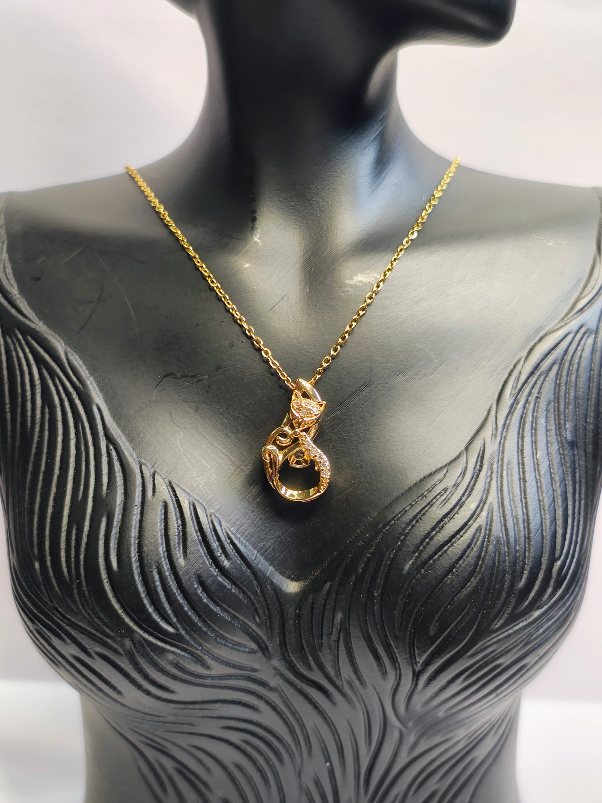 A delicate golden pendant featuring an elegant cat design, symbolizing grace, curiosity, and charm. Suspended on a sleek anti-tarnish chain, this piece is perfect for everyday wear or gifting to a cat lover. Lightweight, stylish, and versatile, it adds a touch of playful sophistication to any outfit.