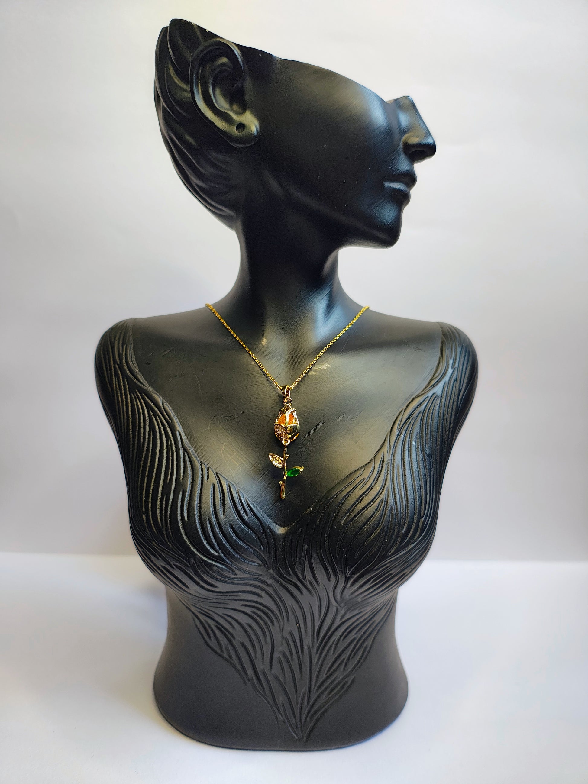 A timeless piece of elegance, this Golden Bloom Necklace features a delicate rose pendant adorned with sparkling stones and vibrant green leaves. Symbolizing love, beauty, and new beginnings, it’s the perfect accessory to add a touch of grace and charm to any outfit. Ideal for gifting or styling on special occasions.