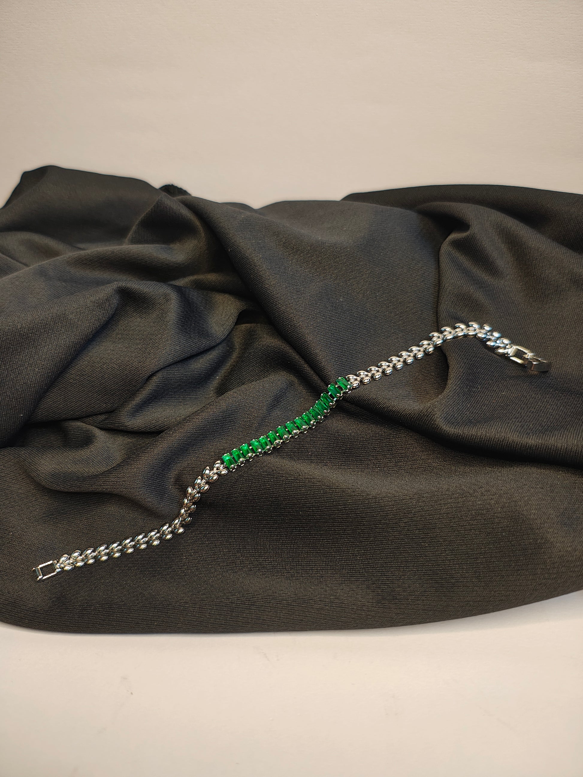 Add a pop of elegance with the Green AD Stone Bracelet. Featuring sparkling green stones set in a sleek design, this bracelet is perfect for elevating everyday looks or adding a touch of glamour to special occasions. Lightweight, trendy, and effortlessly stylish.