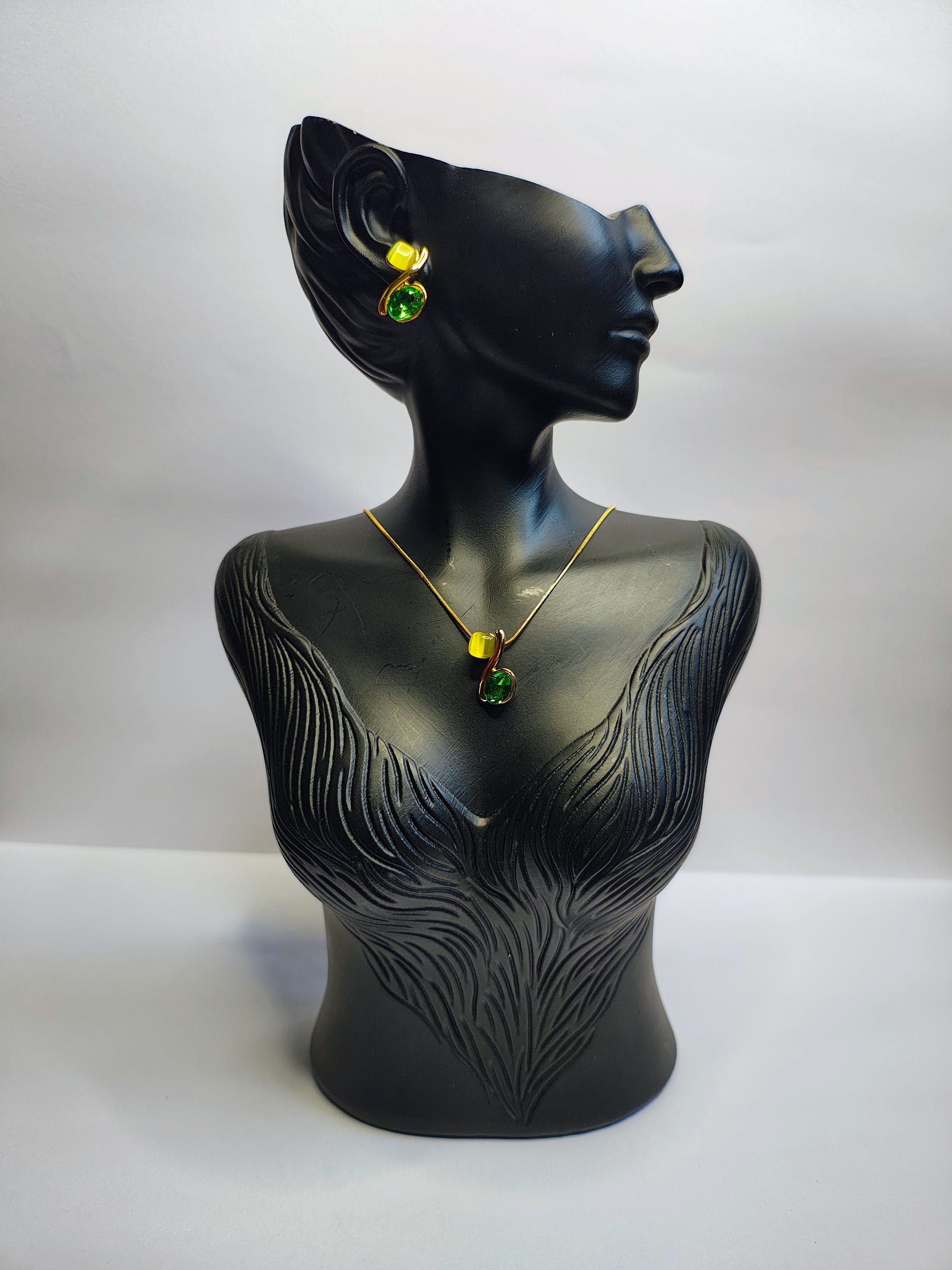 Add a fresh glow with the Green Stone Jewellery Set. Featuring a matching necklace and earrings with soft green stones and golden detailing, this set reflects elegance and subtle charm. A perfect pick for festive looks, parties, or as a thoughtful gift for someone special.