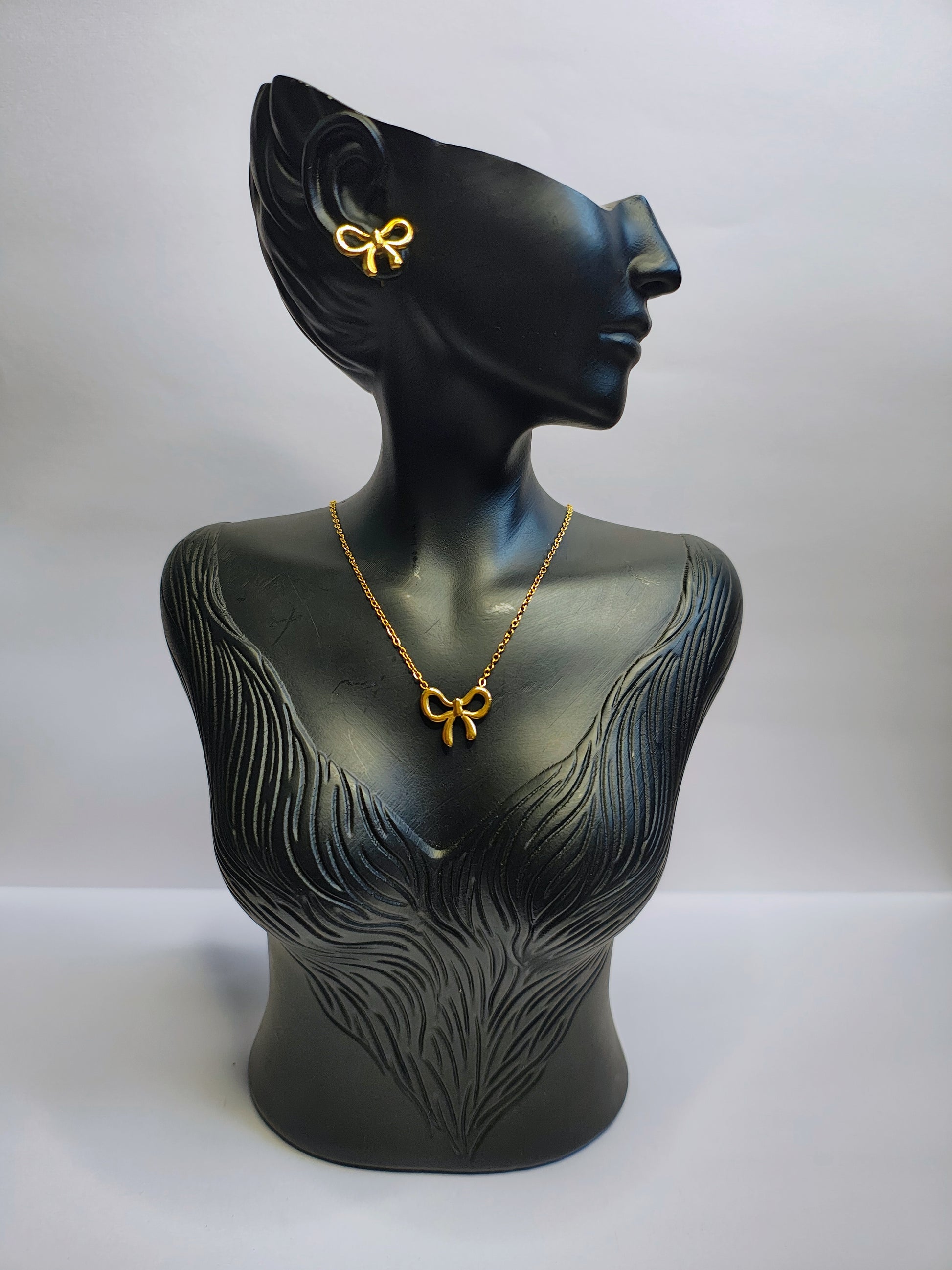 Keep it chic with the Minimal Bow Set. Featuring a delicate necklace and earrings with sleek bow designs in golden accents, this set is perfect for everyday elegance and subtle charm. Lightweight and versatile ideal for daily wear, parties, or gifting someone special.