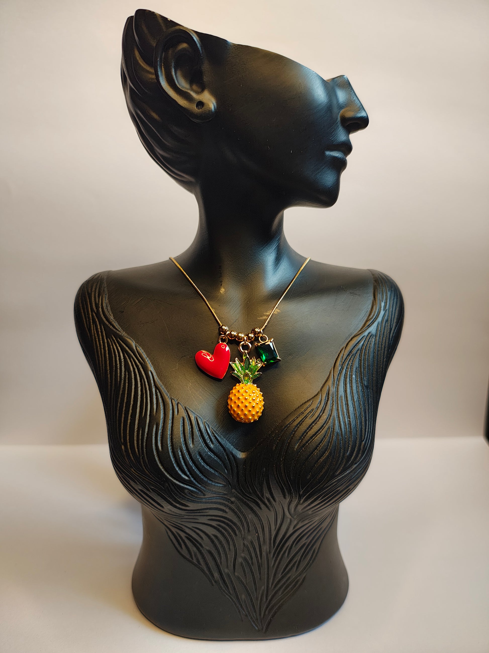 Add a playful twist to your style with this Pineapple Charm Necklace. Featuring colorful fruit pendants on a sleek chain, it's lightweight, trendy, and perfect for casual outfits or gifting.
